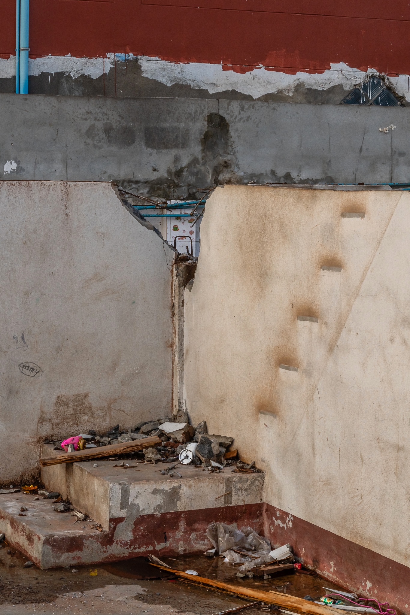 The old market is being torn down. Up the wall we see where the treads of stairs used to be; but the stairs, and the people who went down them, are gone.