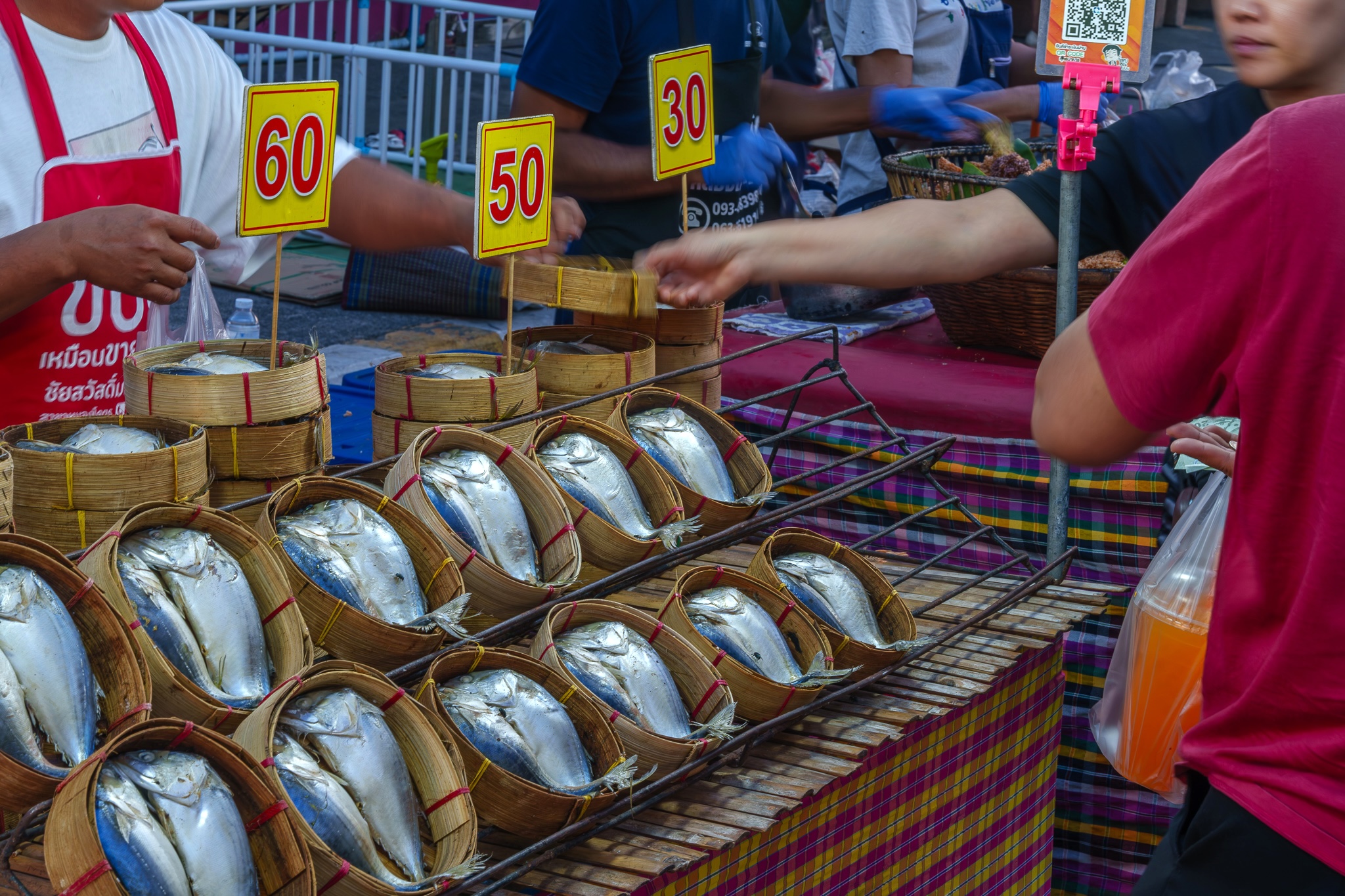 The mutual circuit, with the vendor holding the goods in a bag, and touching hands with the buyer to exchange the cash, must occur millions of times a day in Thailand. The opposite of the vile "Contactless."