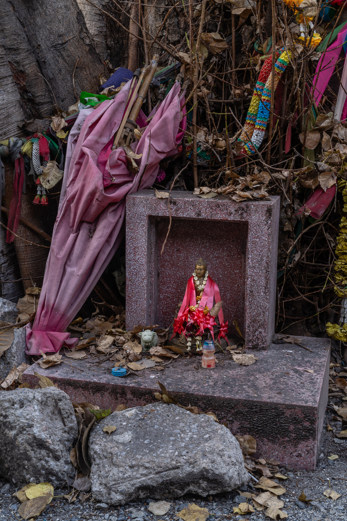 A workers' shrine near a condo construction site in Khlong Toei, this shrine has undergone many iterations (and does in fact deserve a photo essay all by itself). And I have never been able to figure out what the repurposed pink object actually is. It looks like a sink, but there's no drain!